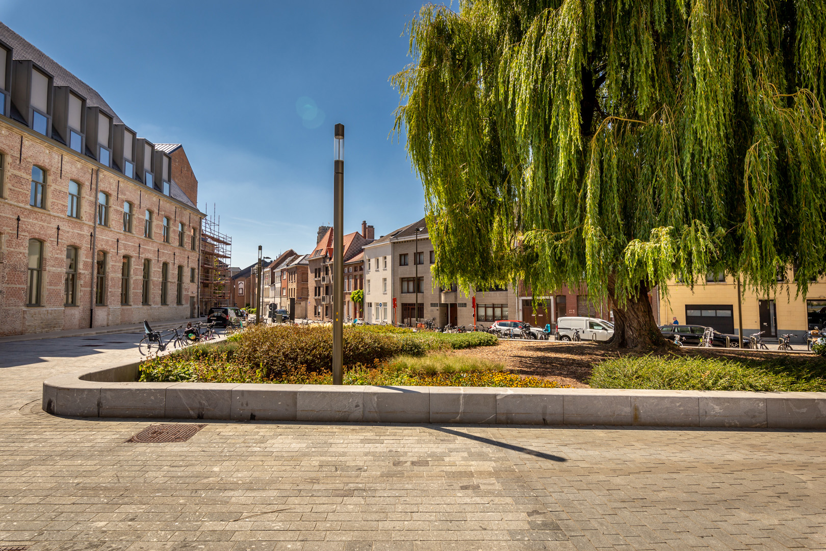 Schoutetstraat vormt een smalle bestaande steeg die naar analogie met andere stegen in het centrum een woonerfkarakter gaat krijgen met een gemengd gebruik door auto’s, fietsers en voetgangers.